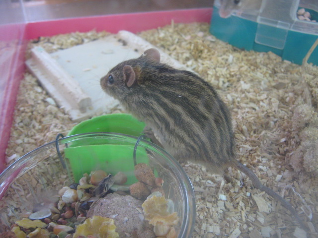 私がずぅ~っと入れたかったマウス!「ゼブラマウス(シマクサマウス)」も入荷しました!! このイノシシのウリボーみたいな模様!! 2匹いたら名前を「いしし」と「のしし」にしたいところですが、残念ながらこのコ1匹だけの入荷です。