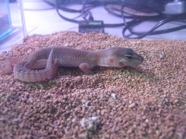 ココナッツハウスの中に隠れていたのを、撮影の為にハウスをヒョイッと急にどけてしまった為、かなり寝ぼけ顔ですが、ヒョウモントカゲモドキの珍色!ブレイジング・ブリザードも入荷!