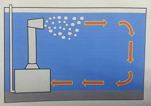 この煙突パーツを付けるとどうでしょう!このような水流になり、よどみも出来なくなるので、ろ過効果はかなりアップしちゃうんです!