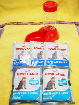 ロイヤルカナン社の室内猫用フードと尿路疾患ケアフードのサンプルを計5袋お付けしちゃいましょう!