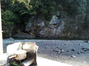 さすがにまたマキだの炭だのはゴメンなので、持参したガスコンロで作りましたが、いやー!ウマかった