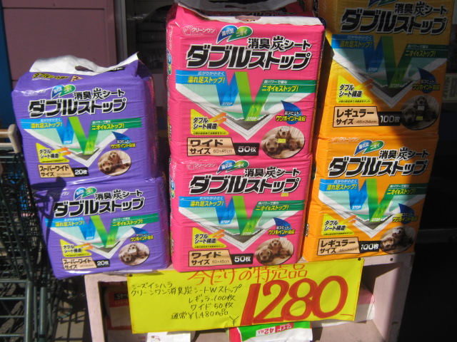 いつも人気のペットシーツ「消臭炭シート ダブルストップ」各サイズ¥1,280!!