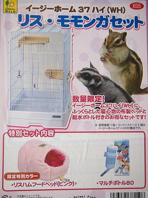 ケージ+フードベッド&ウォーターボトルが付いた、『リス・モモンガセット』!!