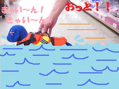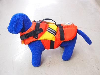万一ワンちゃんが深みにはまってしまっても、これを着用させておけば浮いててくれます。