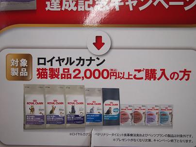 今!!ロイヤルカナンネコ製品を2,000円以上お買い上げ頂きますと・・・!!