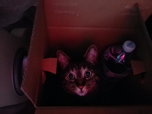 「ほら、お父さん、ボク箱に入っちゃったよ!」って、見て欲しそうなこの顔!く~!かわいい
