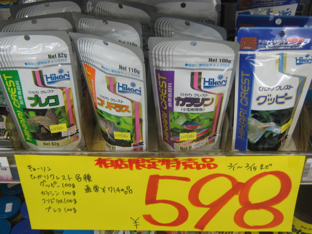 熱帯魚の餌「ひかりクレスト」各種。¥598!!