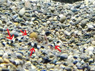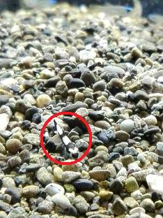 分かります?かなりズームで撮ったんですけど、2cmあるかないかの小さい白黒のお魚です。