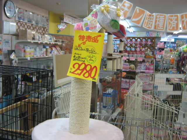 おもちゃと爪とぎが一緒になった「森の遊ニャンち」特価!! ¥2980!!