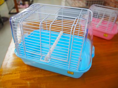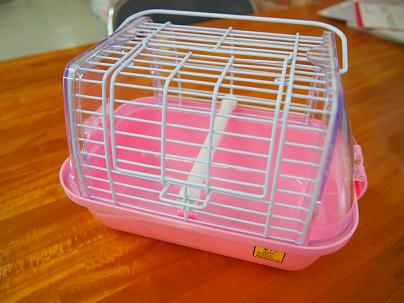小さな小動物の移動用キャリー。鳥さんにもイケるように、止まり木が付いております。