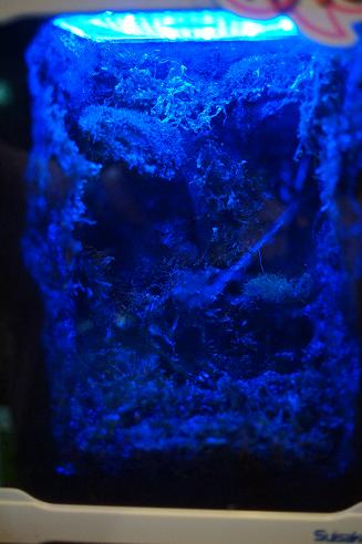 青いライトで夜っぽい雰囲気。