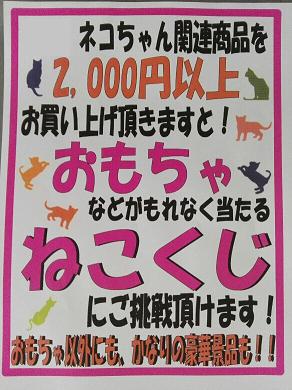 2000円以上ネコさん関連商品(猫砂・フード・おやつ・缶詰などなど)をお買い上げ頂きますと、くじ引きに挑戦出来ます!!
