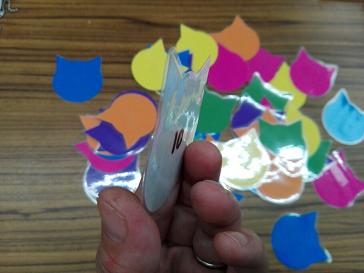 このネコの顔型を1つ1つ切り抜く作業。楽しいっちゃ楽しかったですけど、45歳の男性がこんなことやっててお給料頂いて良いのだろうか…