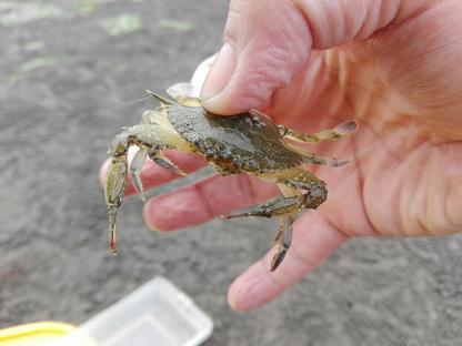 ワタリガニはハサミがとがっているし、大人のワタリガニなんかに挟まれたら大流血モン