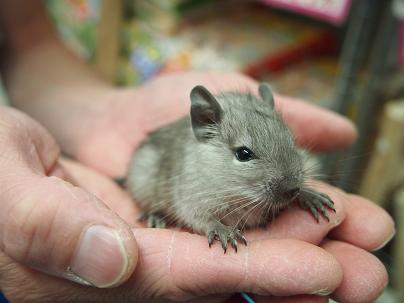 先日紹介させて頂いた、赤ちゃんブルーデグーさんの女の子の方が昨日お家が決まりまして、何しろ今デグーさんは大人気…いや、超人気の小動物ですので、急いで…!!