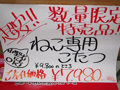 在庫限りの特売品ですので、なるべくお早めにいらして下さい。