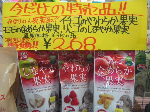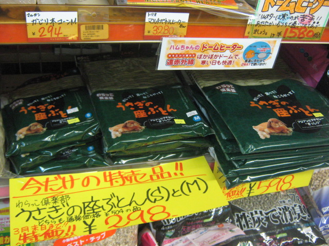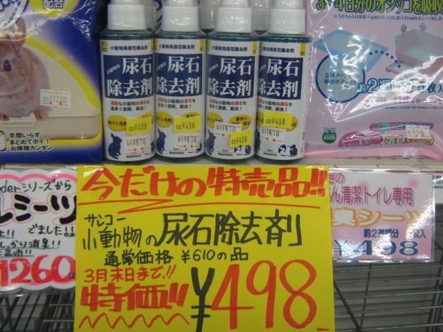 さて、今日はまたまた始まりました、柏店の「今だけの特売品」を紹介したいと思います!!3月末日までの特売品です!いっぱいあるので、また数日に分けて紹介させて頂きます。 今日は小動物モノからいきましょうか!