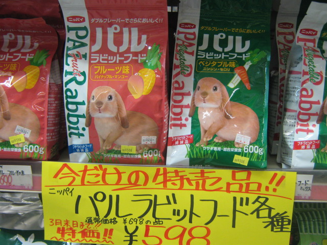 割と人気のラビットフード「パル」各種。 特価!! ¥598!!
