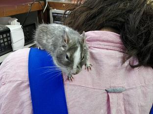 すごくいいコで、こうしてスタッフの体にくっついていて、どこかへ行ってしまったりしないんです。