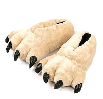 どんなのかと言いますと、怪獣の足というか獣の足というか、ツメの付いたもこもこのぬいぐるみみたいなスリッパです。