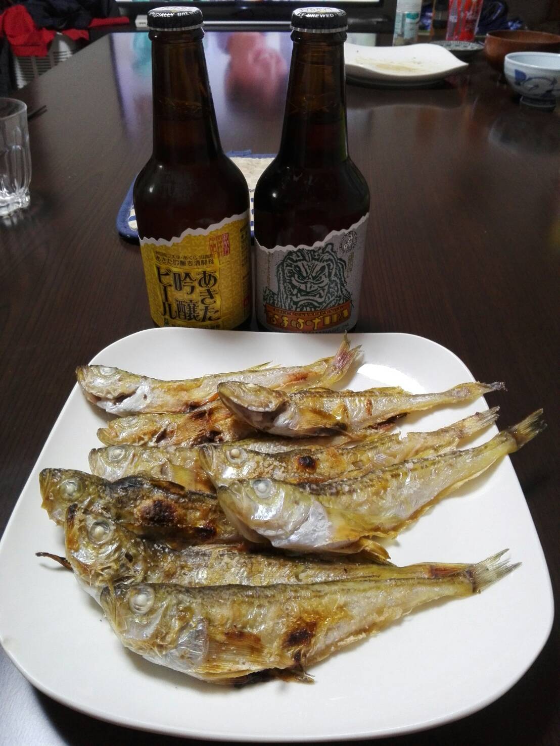 焼きハタハタ。そしておビール。