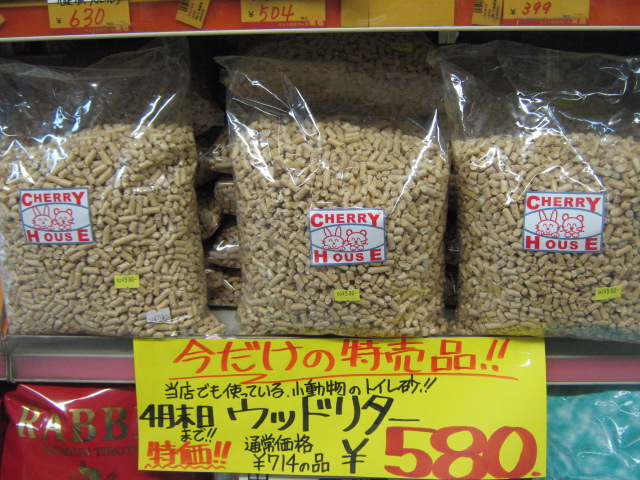 そして、当店でもうさぎさんに使っているトイレ砂、「ウッドリター」嬉しい特価!!