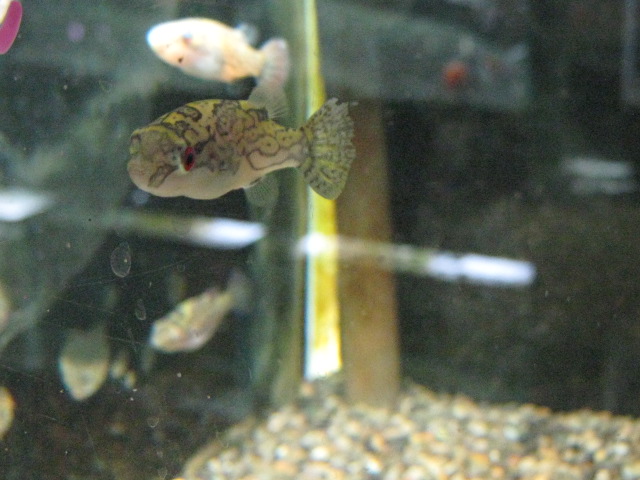 こちらも淡水で飼えるフグさん、アカメフグです。絶対いい!と思うのですが、そんなには売れません。多分他のお魚と混泳出来ないからでしょう。でも、フグですよ!フグ!自分の部屋にフグ!魅力的じゃないですか!? いいじゃないですか!そのためだけに水槽を増やしたって!(←しつこい?)