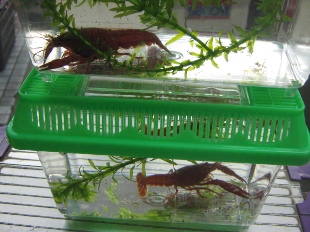 「オレンジザリガニ」ご夫妻。どちらもペア売りです!(画像が暗いですね…ほんとはもっとキレイな濃いオレンジなんです