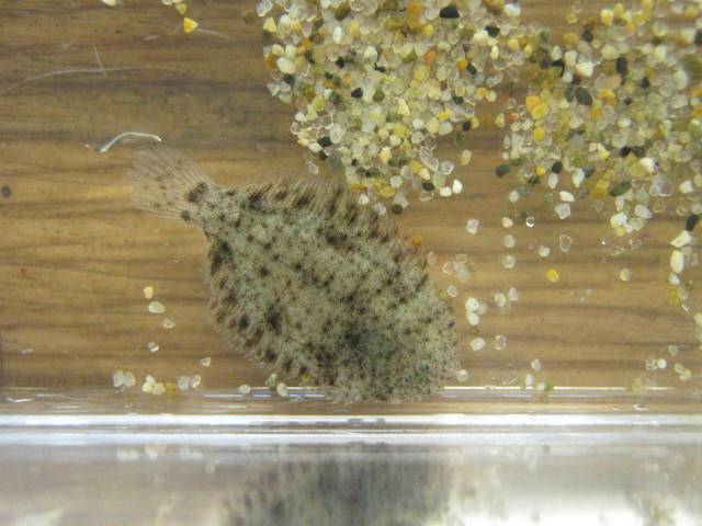 「南米淡水カレイ」。塩分無しの純淡水(真水)で飼えちゃうカレイです。まだベイビィなので、2cmくらいしかありません。