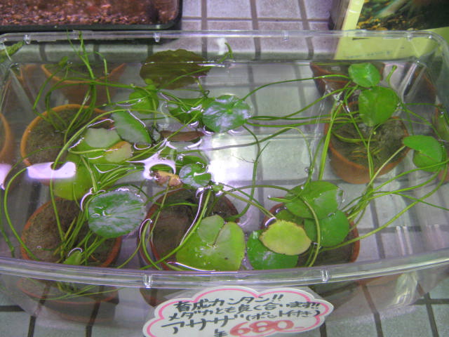 去年も好評だった、「アサザ」も来てます!! 金魚や川魚、メダカなどの水槽に鉢ごとポンッと入れるだけで、風流な雰囲気を味わえます。