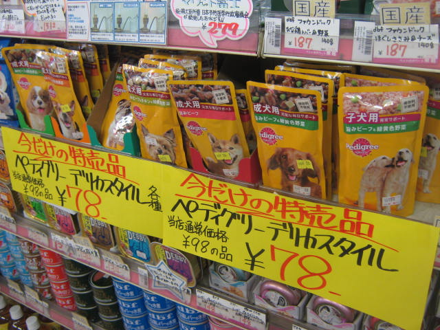ぺティグリーのアルミパック。通常¥98のところ、特価!! ¥78!!