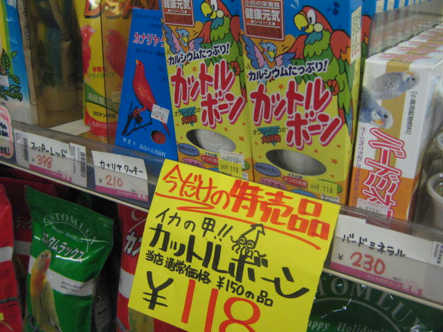鳥さんが喜んでかじるイカの甲!! 「カットルボーン」。通常¥150のところ、特価!!