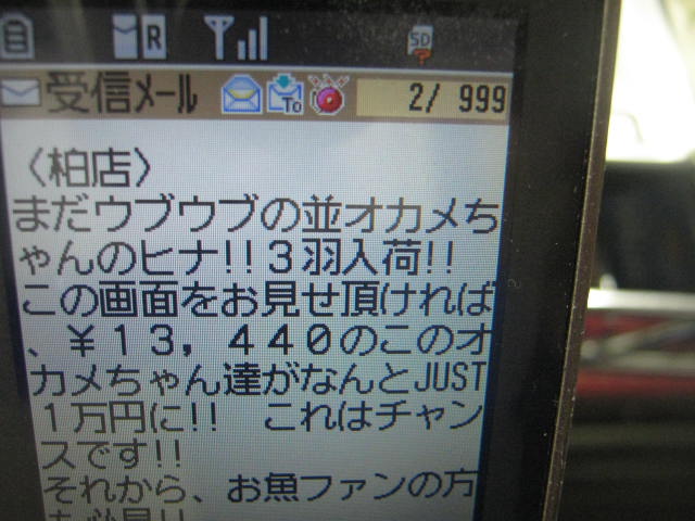 柏店は…おおっ!! これはすごい!! 昨日紹介させて頂いたオカメちゃんがぴったし