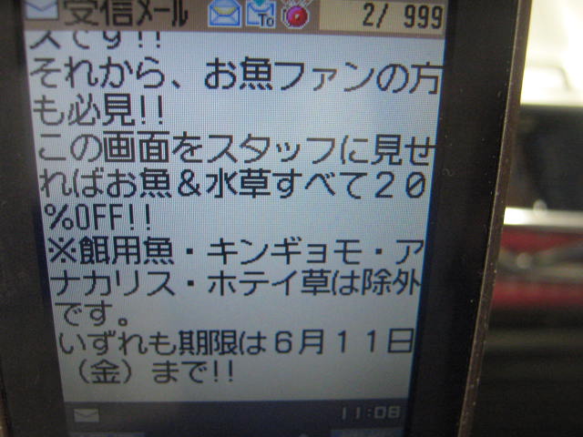 その場で登録して下れば、オカメちゃんを特価で手に入れたり、お魚や水草を2割引きで買えちゃったり出来ます!!(6/11まで)