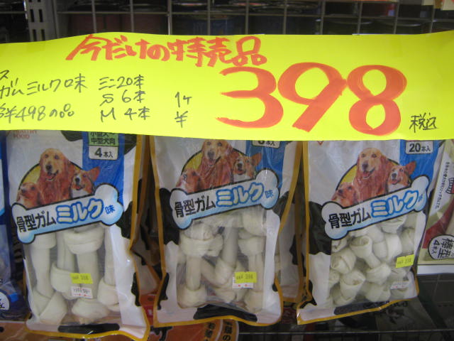 こちらはワンちゃん用!! 「骨型ガムミルク味」 特価!! ¥398!!