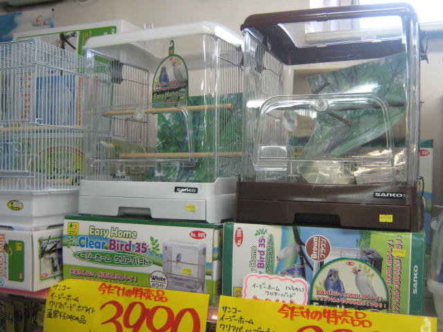 以前、レジ前に小鳥を入れて展示していて大変好評だった、カゴの周りにエサなどが散らかりにくい鳥カゴ!!「イージーホーム・クリアバード」。