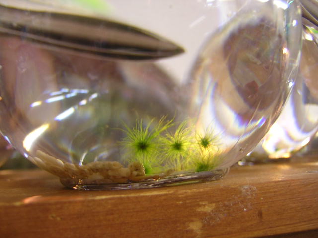 小瓶に付いてるタグに「ぷちもの栄養」が入ってます。お買い上げ後、ビンのフタをあけて、この栄養を入れるだけ。お世話はこれだけです。あとは少しずつ大きくなるのを見て楽しめます。無菌の海水なのでコケは生えないそうです。