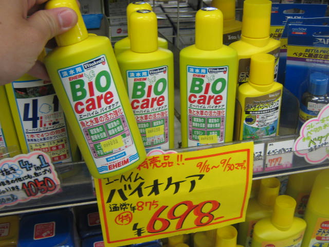 メガネ君、また前担当者で今は流山店で頑張っている「たろう」も大絶賛のおススメ品!! エーハイム社の「バイオケア」250ml 。特価!! ¥698!!