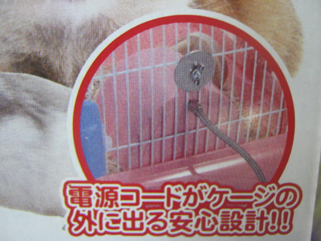 本体をケージに固定出来て、電気コードがケージの外に出る設計なので、コードをかじられてしまう心配がぐっと軽減されます!