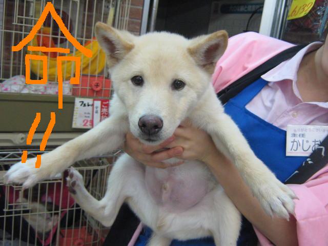 柴犬でございます。しかも珍しい白!! 今は情けないですが、そのうち成長してステキな男の魅力を出しますよ