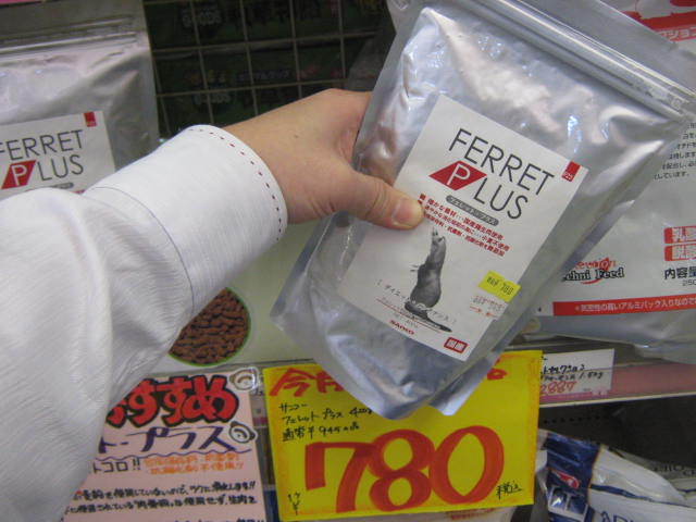 当店の一番オススメフェレットフード!! 「フェレット・プラス400g」!! 特価!! ¥780!!