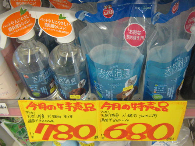 小動物用やフェレット用を先日紹介いたしましたが、犬猫用も特売です!「天然消臭 犬猫用」!