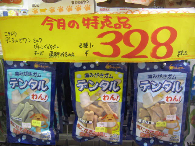 こちらはワンちゃん用歯磨きガム!「デンタルDEわん!」特価!! ¥328!!