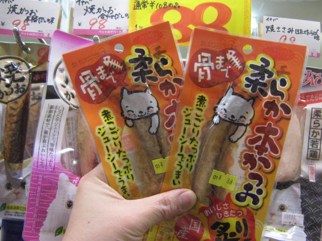 骨まで柔らかいので高齢ネコちゃんにも安心!「柔らか本かつお」特価!! ¥88!!