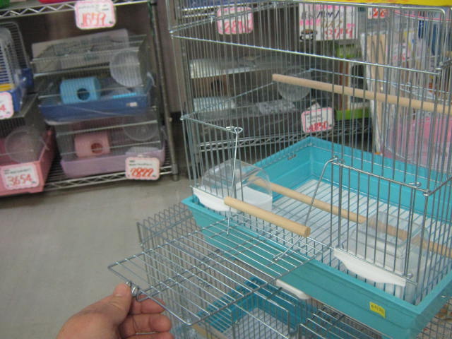 「手乗りカゴ」というのは、こんな風に扉が開くので、手乗りの小鳥さんが出て来易いのです。
