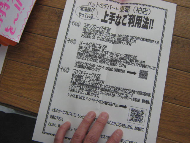 来月はねぇー!柏店ではねー!ネコちゃんの飼い主様に喜んで頂けると思う超ビッグイベントがあるんですよ!必ず近々このブログでお知らせしますので、特にネコちゃんを飼われておられる方はこのブログを欠かさず見ていて下さいね