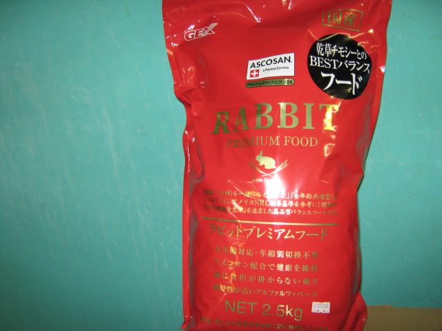 ↑ こちら!!「プレミアムラビットフード」の2.5kg袋(¥3000)をお買い上げのお客様に・・・!!