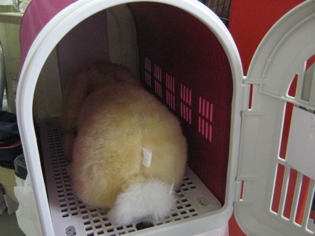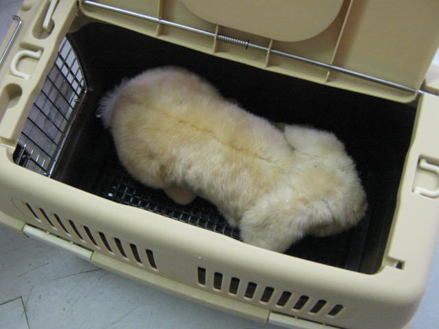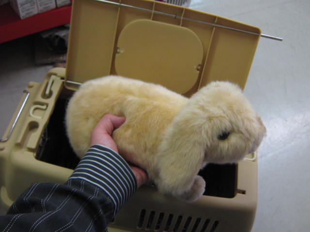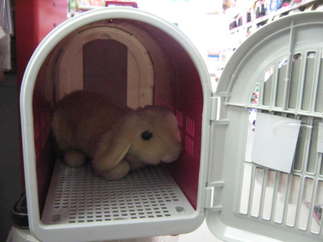例えばこういう前しか開かないようなキャリーにウサギさんを入れた場合・・・