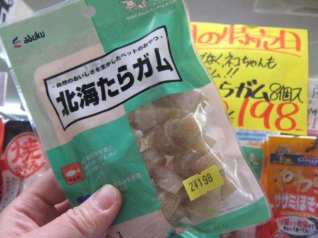 鱈なので、ワンちゃんだけでなくネコちゃんにもOKのガムです。特価!! ¥198!!