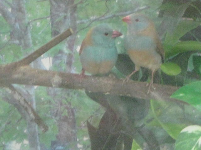 コチラがキレイな鳥さんの方。「ルリガシラ サファイア」のペアです。カメラを向けると、驚いちゃってか~なりあっちこっちと飛び回るので、この1枚を撮るのもひと苦労でした